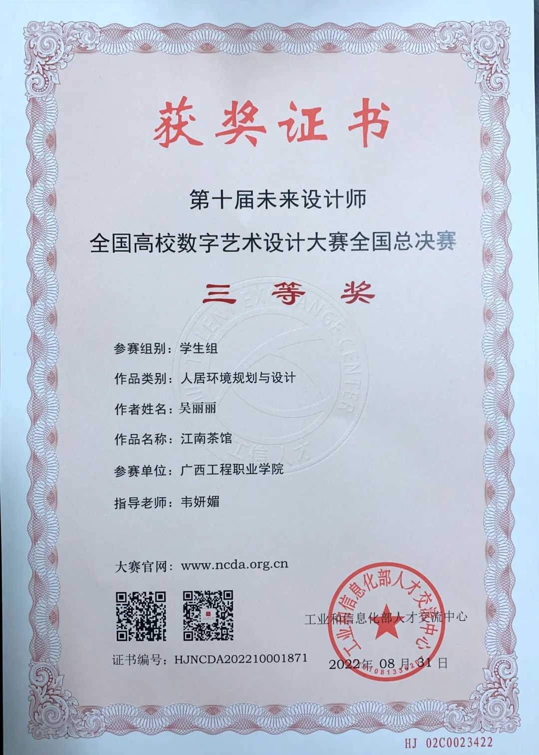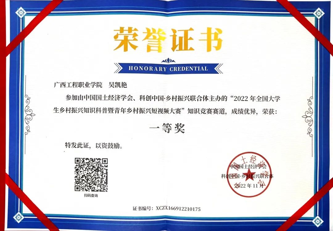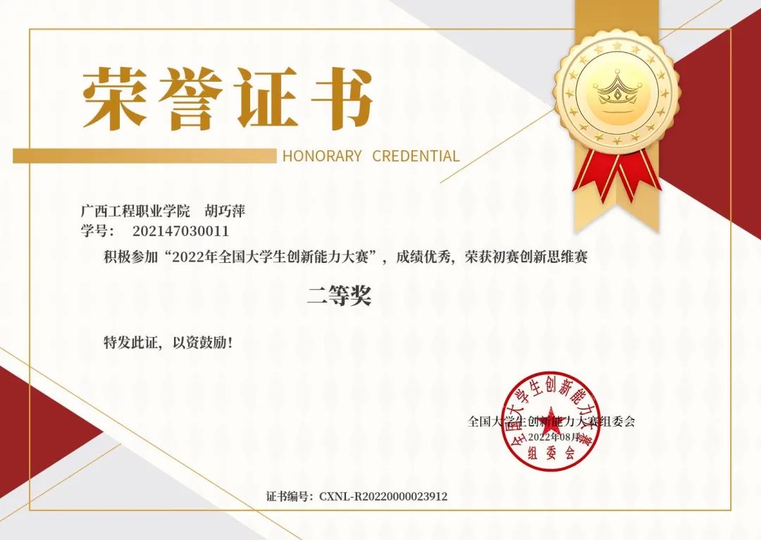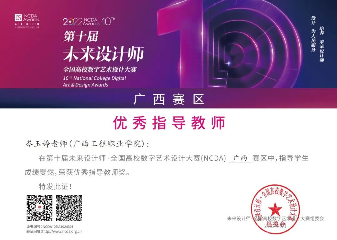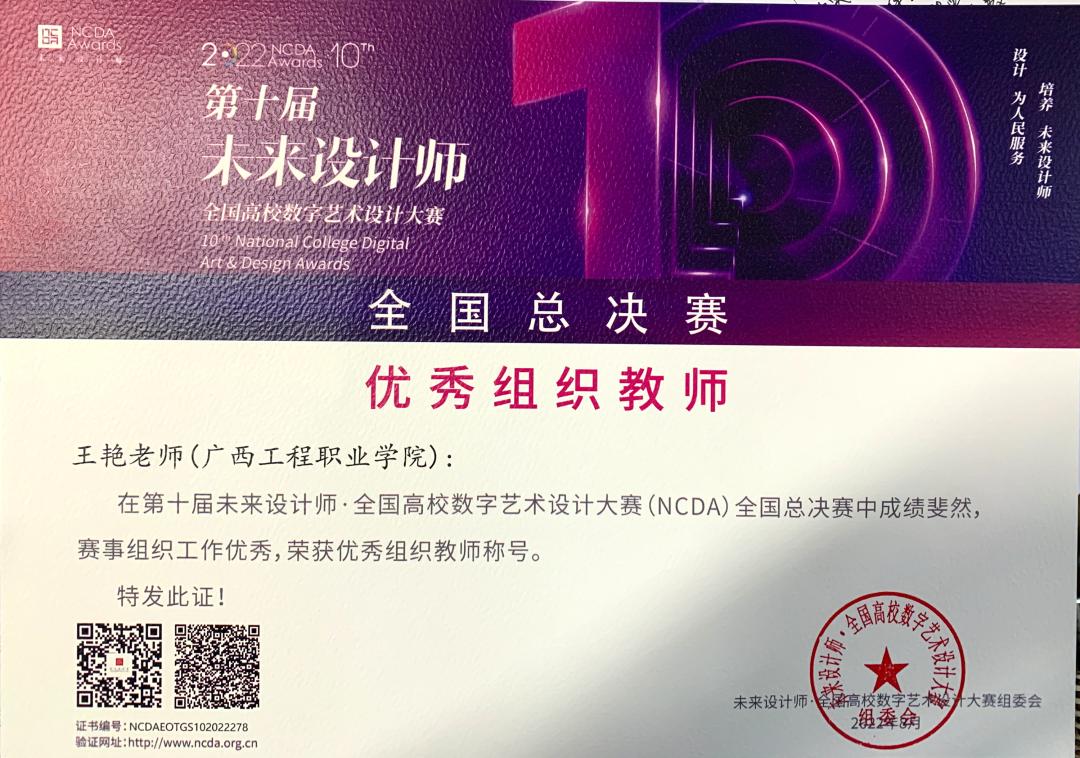 廣西賽區(qū)優(yōu)秀指導(dǎo)教師獎:韋妍媚 岑玉婷