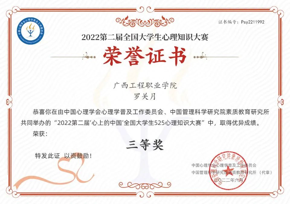 2022第二屆“心上的中國”全國大學(xué)生525心理知識大賽(中國心理學(xué)會心理學(xué)普及工作委員會、中國管理科學(xué)研究院素質(zhì)教育研究所主辦)