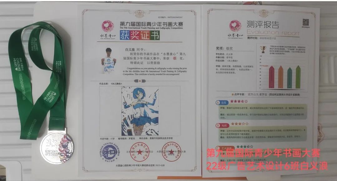 2022年師生參加各級各類賽事獲獎榮譽展示感謝奮斗的你“水墨童心”第九屆國際青少年書畫大賽(印尼和諧文化基金會、北京朱零山水畫藝術(shù)研究會、水墨童心國際青少年書畫大賽組委會舉辦)
