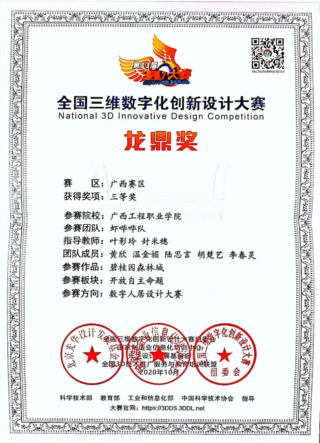 全國三維數(shù)字化創(chuàng)新設(shè)計大賽龍鼎獎廣西賽區(qū)(全國三維數(shù)字化創(chuàng)新設(shè)計大賽組委會、國家制造業(yè)信息化培訓(xùn)中心、光華設(shè)計發(fā)展基金會、全國3D技術(shù)推廣服務(wù)與教育培訓(xùn)聯(lián)盟舉辦)