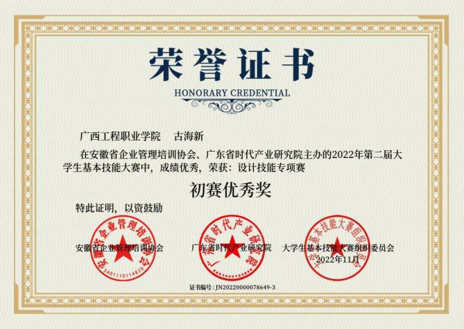 設(shè)計技能證書