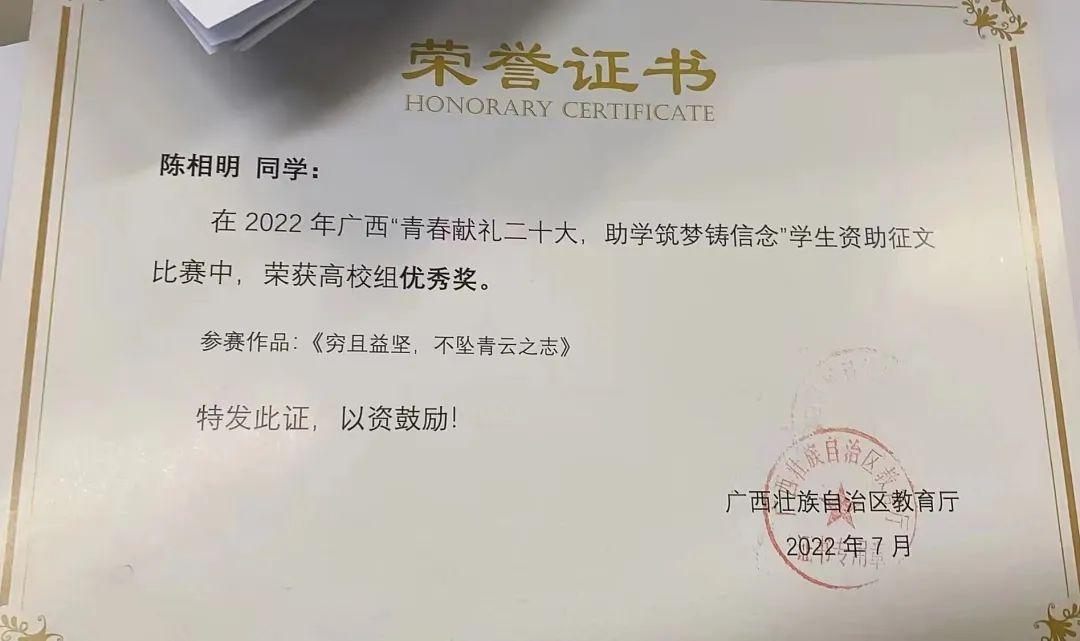 2022年廣西“青春獻禮二十大,助學(xué)筑夢鑄信念”學(xué)生資助征文比賽(廣西壯族自治區(qū)教育廳主辦)