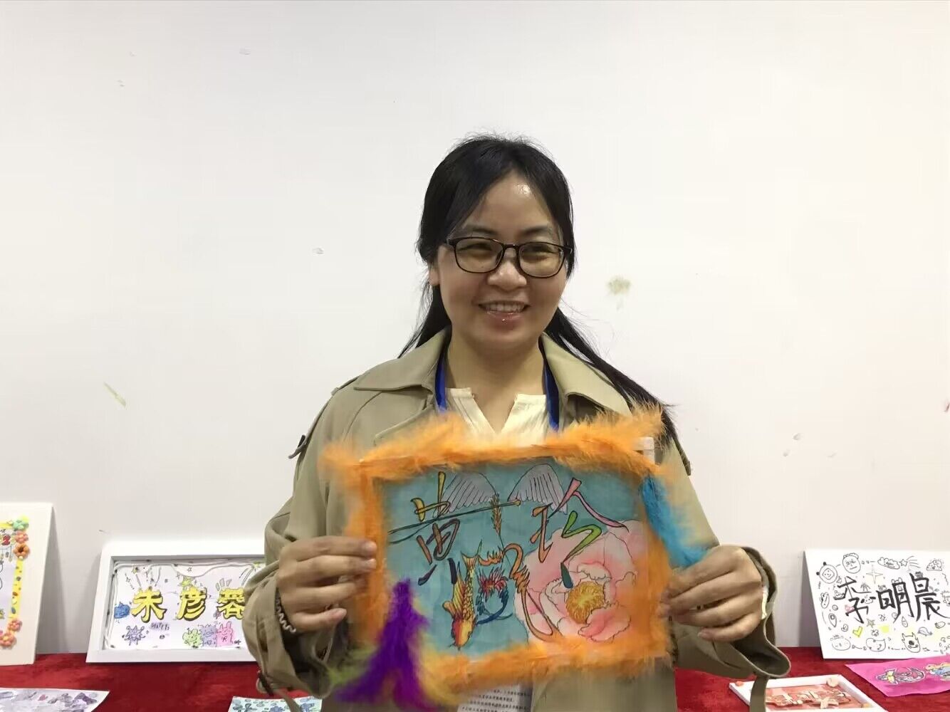 同學(xué)們以女教師名字進行藝術(shù)形式上的繪畫創(chuàng)作,以畫抒發(fā)情感,以作品描繪美好,來表達感恩全校女老師在背后的默默付出。