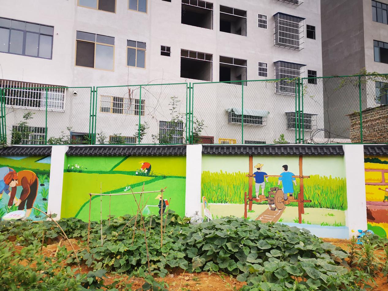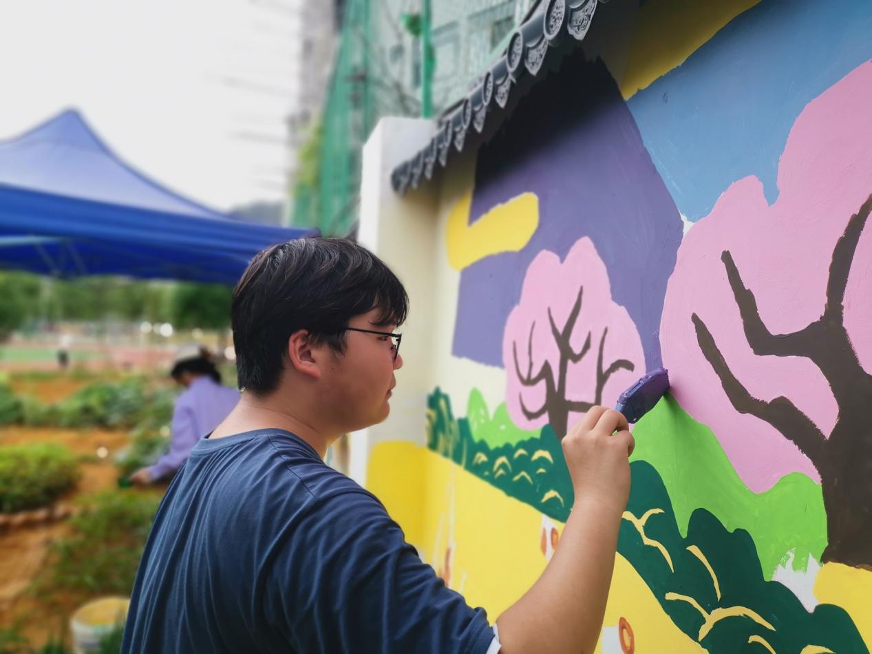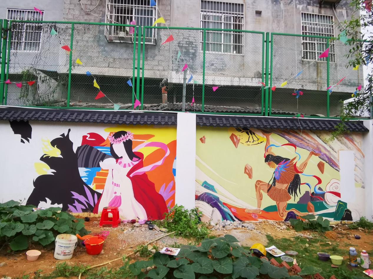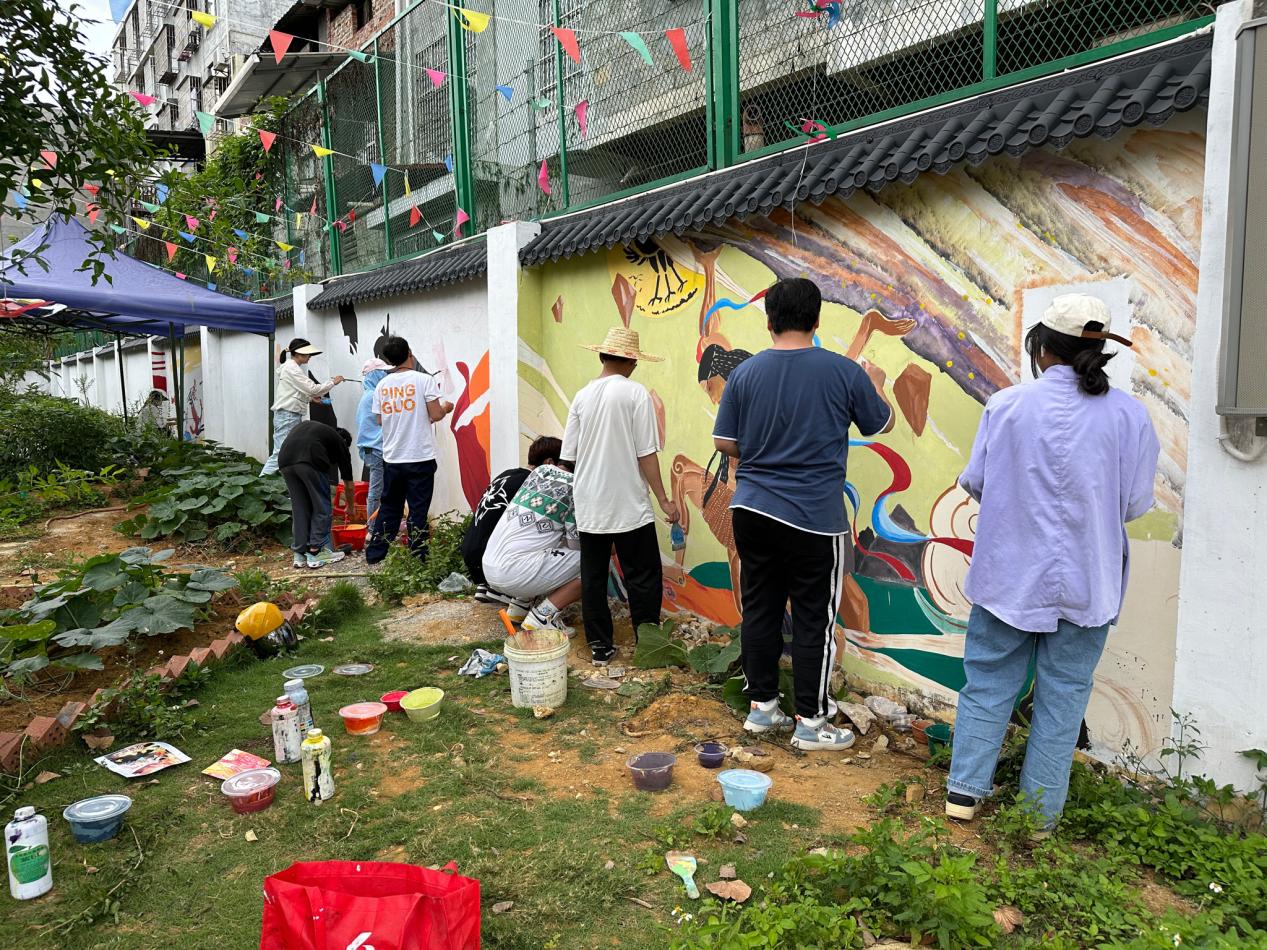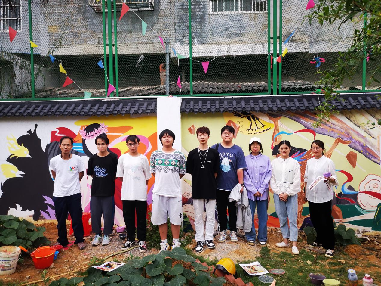 從紙上的設(shè)計(jì),到具體在石灰白墻上展現(xiàn)出來(lái),是一個(gè)從無(wú)到有、克服困難的過(guò)程。學(xué)生用自己的耐心、熱情和堅(jiān)持完成了這一任務(wù),取得了良好效果。同學(xué)們保持戰(zhàn)斗熱情,勾線起稿、立面粉刷、精描線稿、調(diào)和顏色、上墻涂色,一筆一畫皆風(fēng)景。