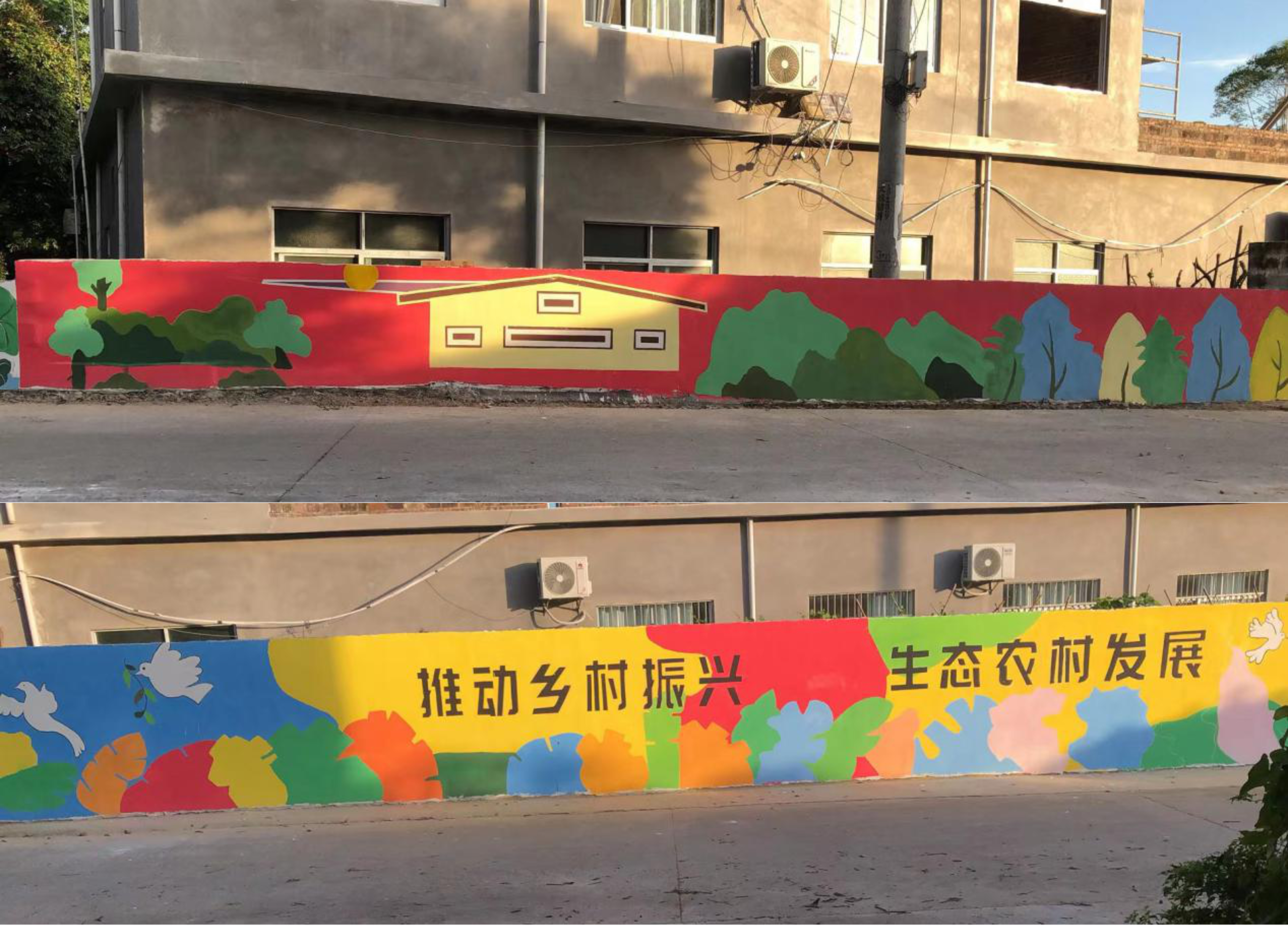 為進一步學習貫徹黨的二十大精神,積極響應黨的號召,助力鄉(xiāng)村振興建設,打造“美麗庭院”,為鄉(xiāng)村振興添色彩,提升鄉(xiāng)村內(nèi)涵,7月21日至23日,藝術(shù)設計學院黨支部、百色工程職業(yè)技術(shù)學校黨支部范玉翠、郁長松、趙志輝、蘇媚、陸閑等5名教師黨員赴玉林市陸川縣橫山鎮(zhèn)旺坡村開展公益“彩色文化墻繪,繪就鄉(xiāng)村振興”主題黨日活動,用藝術(shù)服務鄉(xiāng)村振興、用畫筆描繪美麗鄉(xiāng)村。黨員教師共學黨史,共繪創(chuàng)意墻繪,助力鄉(xiāng)村振興建設,展示“黨建引領(lǐng)、產(chǎn)業(yè)興旺、生態(tài)宜居、生活富裕、鄉(xiāng)風文明、治理有效”的鄉(xiāng)村振興新風貌。