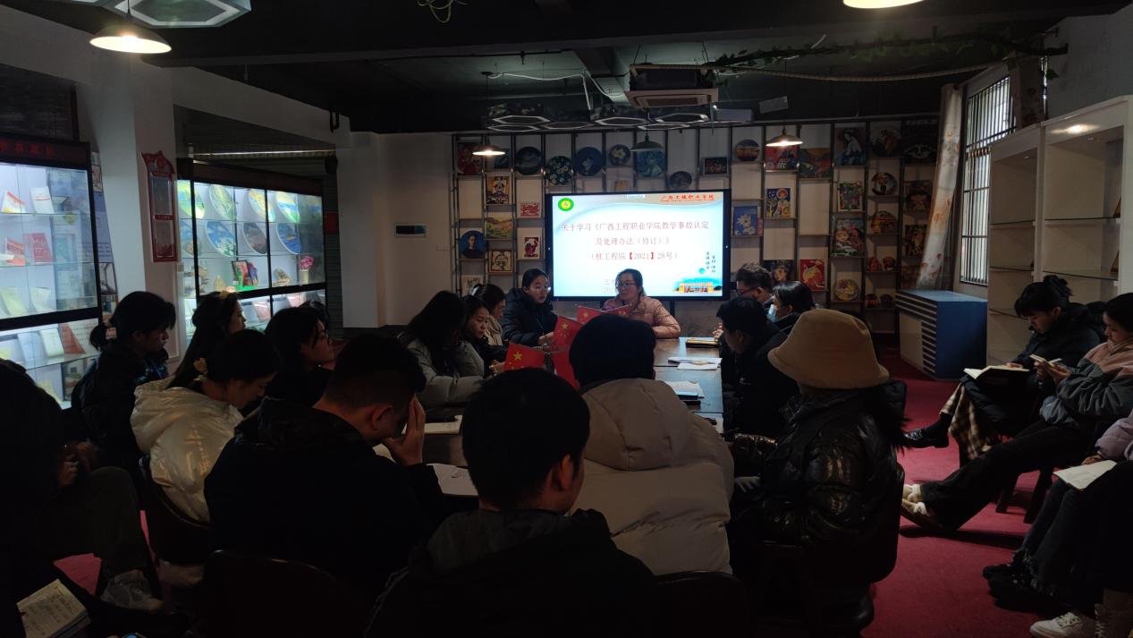 會上,藝術(shù)設(shè)計學院院長覃鳳姣對近期學生管理工作做出了要求,她要求全體輔導(dǎo)員根據(jù)學校相關(guān)會議精神做好開學準備工作,使學生順利、有序返校;對黨支部工作提出了要求,要求全體黨員教師要端正工作態(tài)度,按時按質(zhì)按量地完成工作。藝術(shù)設(shè)計學院辦公室主任趙金甜對教學工作及學院的行政工作進行了補充,要求各位教師做好新學期備課工作,調(diào)整心態(tài),盡快投入到工作當中。最后,學院全體教師共同學習了《廣西工程職業(yè)學院課堂教學管理規(guī)定》、《廣西工程職業(yè)學院教學事故認定及處理方法》,藝術(shù)設(shè)計學院院長覃鳳姣要求學院全體教師嚴格按照文件要求完成教學工作,做好課堂教學管理,避免出現(xiàn)教學事故。