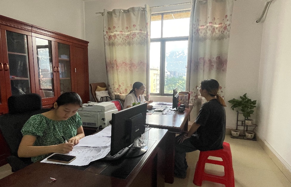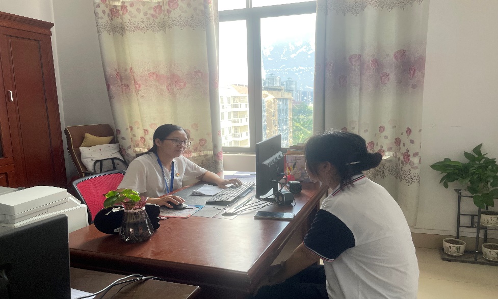 圖為黨支部書記覃鳳姣同志對2024年發(fā)展對象人選進行談話