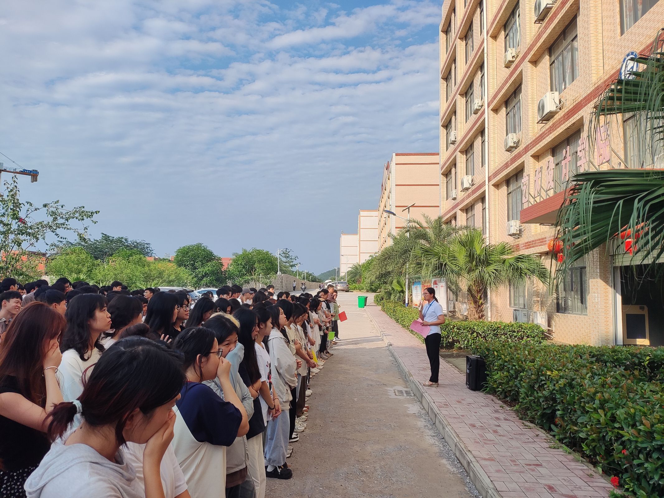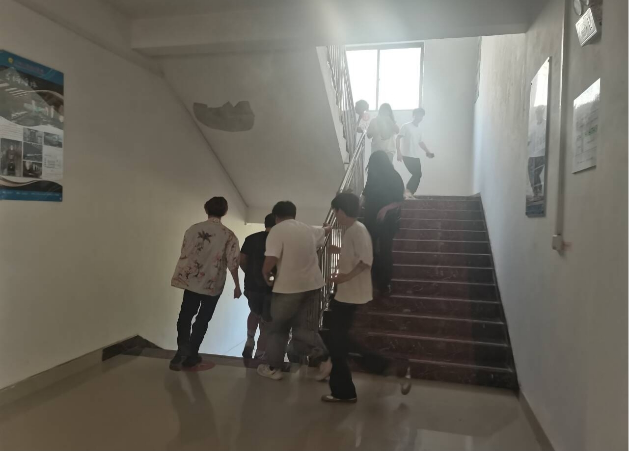 在活動(dòng)過程中,實(shí)驗(yàn)實(shí)訓(xùn)室濃煙滾滾,室內(nèi)報(bào)警器響起后,同學(xué)們手捂住口鼻,有序撤離到學(xué)院門口的安全地帶,所有師生均在一分鐘內(nèi)安全撤離到指定位置。