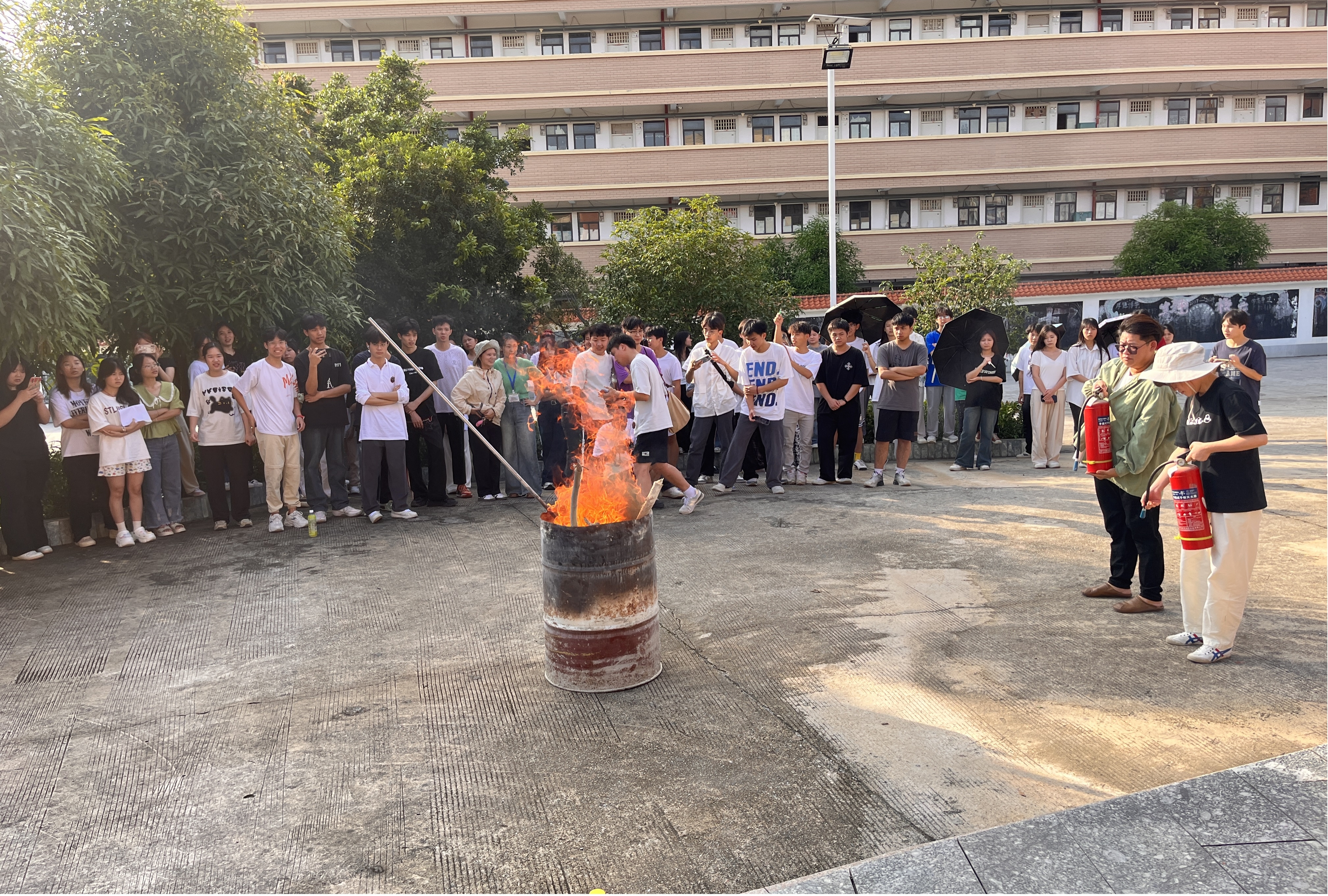 全部安全疏散完畢后,院長(zhǎng)覃鳳姣講解滅火器的使用方法和注意事項(xiàng),向同學(xué)們講解了干粉滅火器“一提二撥三瞄四壓”的操作方法,趙志輝和李海鳳老師進(jìn)行了現(xiàn)場(chǎng)演示滅火器的操作程序,讓老師同學(xué)們掌握正確使用滅火器的方法。