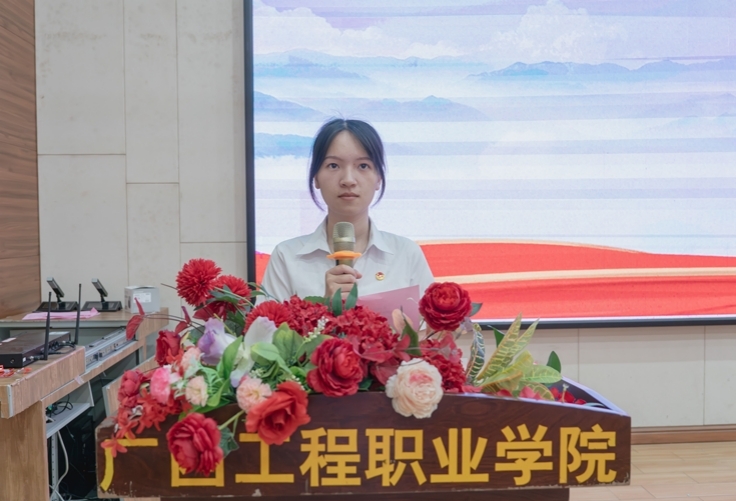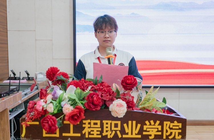 第九屆學生會宣傳部吳明峰宣讀《廣西工程職業(yè)學院2024年學生代表大會提案工作委員會關于提案工作的報告》