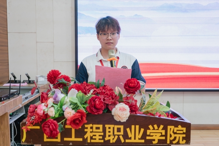 學生代表宣讀倡議書,號召學院全體青年,懷抱夢想,勇?lián)姑?,腳踏實地,堅定不移跟黨走,將個人的價值目標與新時代奮進的目標相結(jié)合,在不懈奮斗中實現(xiàn)人生價值。