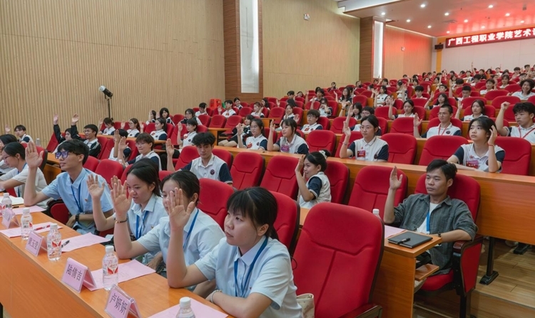 藝術設計學院黨支部書記、院長覃鳳姣,黨支部副書記趙志輝、辦公室主任趙金甜及全體輔導員出席本次大會,各班級共115名學生代表參加大會。本次大會由藝術設計學院分團委書記謝彩英主持。