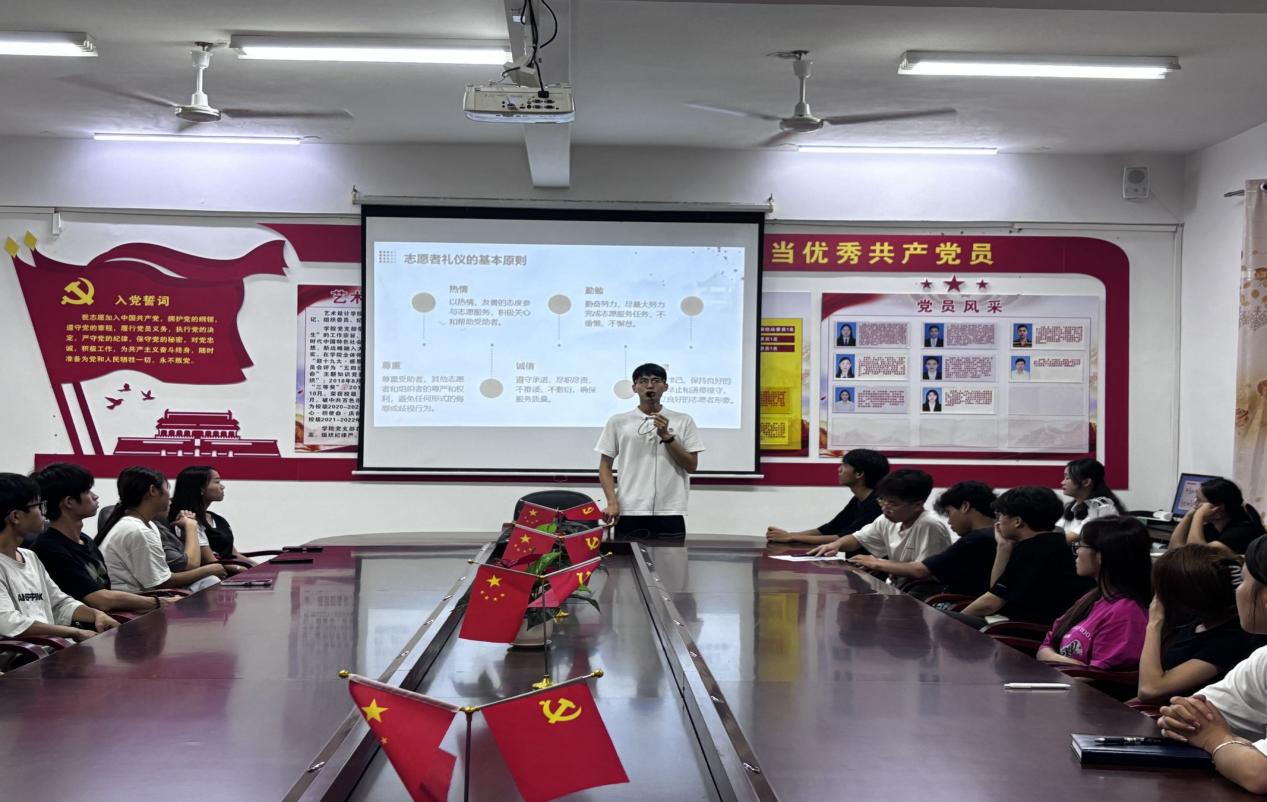 圖為曹遠(yuǎn)翔老師正在做2024級(jí)新生接待志愿者培訓(xùn)