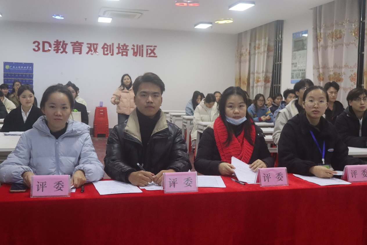 本次初選賽評(píng)委由藝術(shù)設(shè)計(jì)學(xué)院黨支部副書(shū)記趙志輝、藝術(shù)設(shè)計(jì)學(xué)院辦公室主任趙金甜,藝術(shù)設(shè)計(jì)學(xué)院蘇媚老師、梁宇老師、黃玉瑩老師、廖乃龍老師、陸蘭老師、黃艷娟老師等老師擔(dān)任。