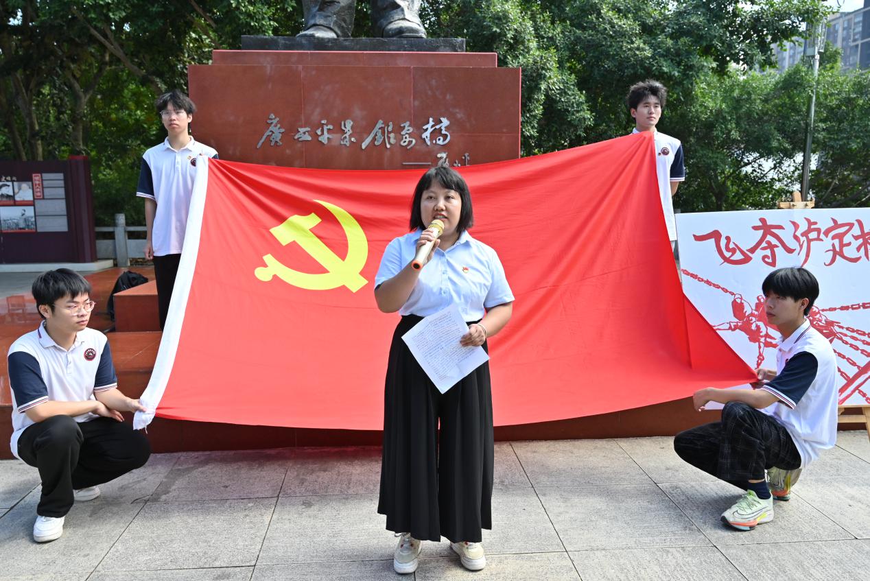在鄧小平銅像廣場,學(xué)校黨委副書記、校長羅艷妮講話,她指出此次“紅色基因體驗行”專題研學(xué)活動不僅是一次參觀學(xué)習(xí)之旅,更是一次精神洗禮和黨性錘煉。通過實地參觀體驗和現(xiàn)場教學(xué),學(xué)生們深刻感受到了革命先烈們的英勇事跡和崇高精神,進一步堅定了理想信念,增強了歷史使命感和社會責(zé)任感。希望同學(xué)們以此次研學(xué)活動為契機,傳承紅色基因,弘揚紅色精神,努力成為有理想、敢擔(dān)當(dāng)、能吃苦、肯奮斗的新時代好青年,為實現(xiàn)中華民族偉大復(fù)興的中國夢貢獻青春力量。