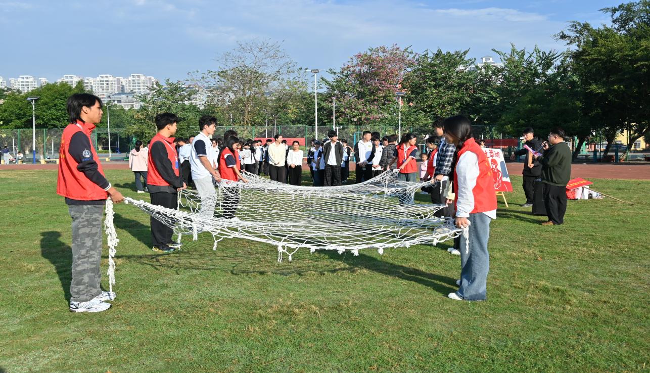 首先進行紅軍過草地關(guān)卡一活動,兩組隊長帶領(lǐng)隊員在固定網(wǎng)格區(qū)域按照匍匐前進的姿勢穿過網(wǎng)格,體驗紅軍過草地過程。紅軍過草地的故事給同學(xué)們帶來了啟示:團隊合作和領(lǐng)導(dǎo)力是攻克難關(guān)的關(guān)鍵,只有憑借著意志的力量和不屈不撓的精神才能實現(xiàn)自己的目標(biāo),無論在什么時候都應(yīng)該像紅軍一樣,砥礪前行,永不言棄。