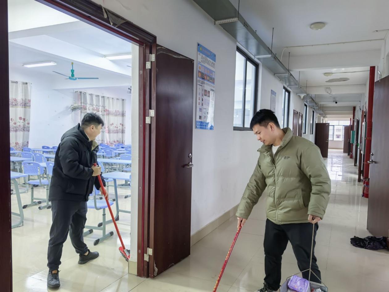 藍(lán)啟成、王杰老師打掃實(shí)訓(xùn)室、走廊衛(wèi)生