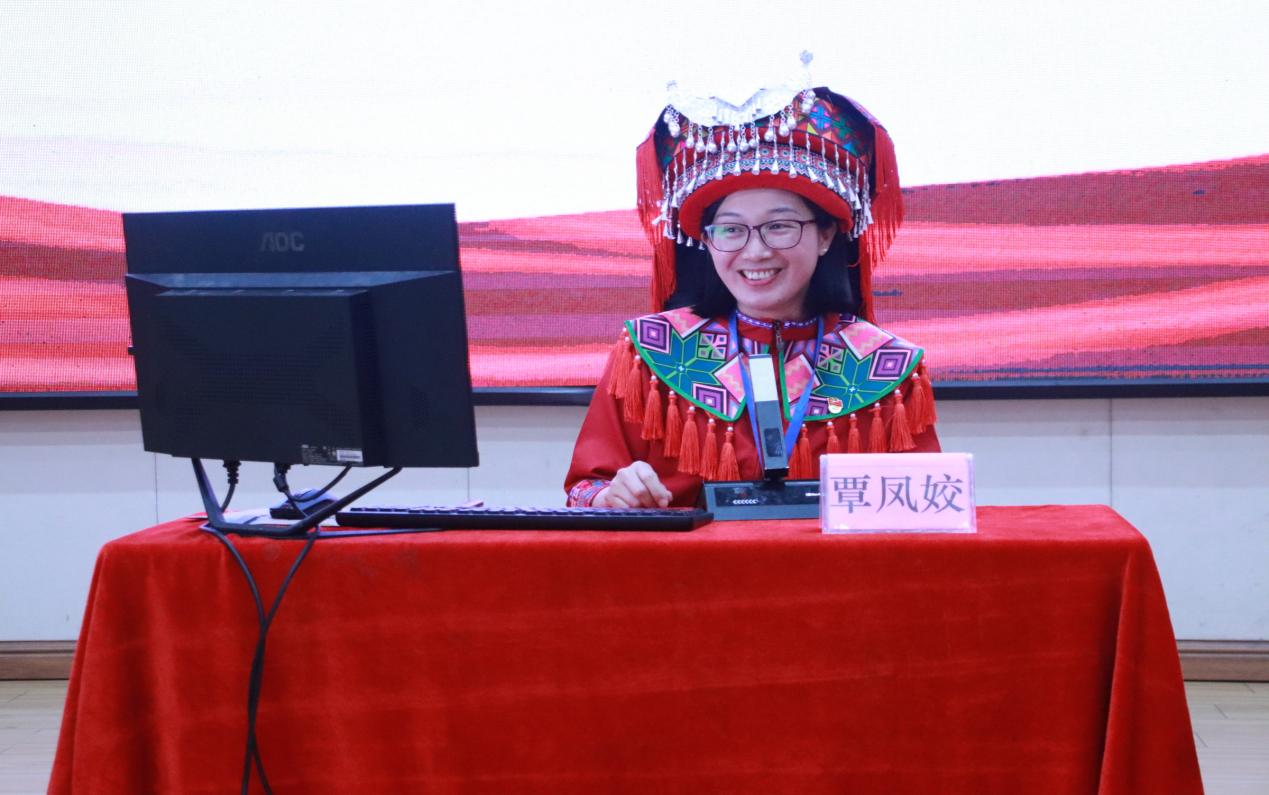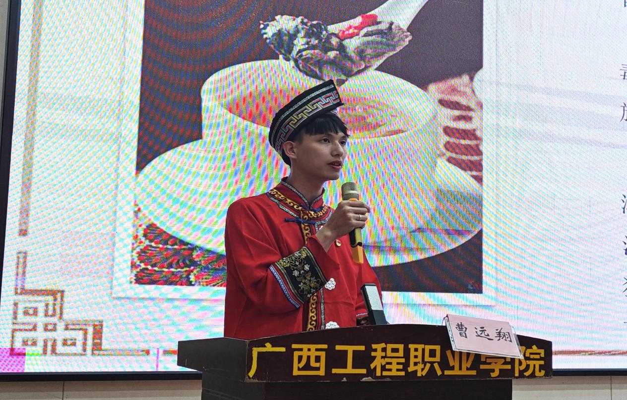 教育學院黨支部宣傳委員農(nóng)山同志,他以壯族山歌文化和銅鼓藝術為主線,展現(xiàn)了壯鄉(xiāng)的錦繡山河與團結精神。“壯族山歌傳唱千年,唱的是對美好生活的向往,更是民族團結的深情。”