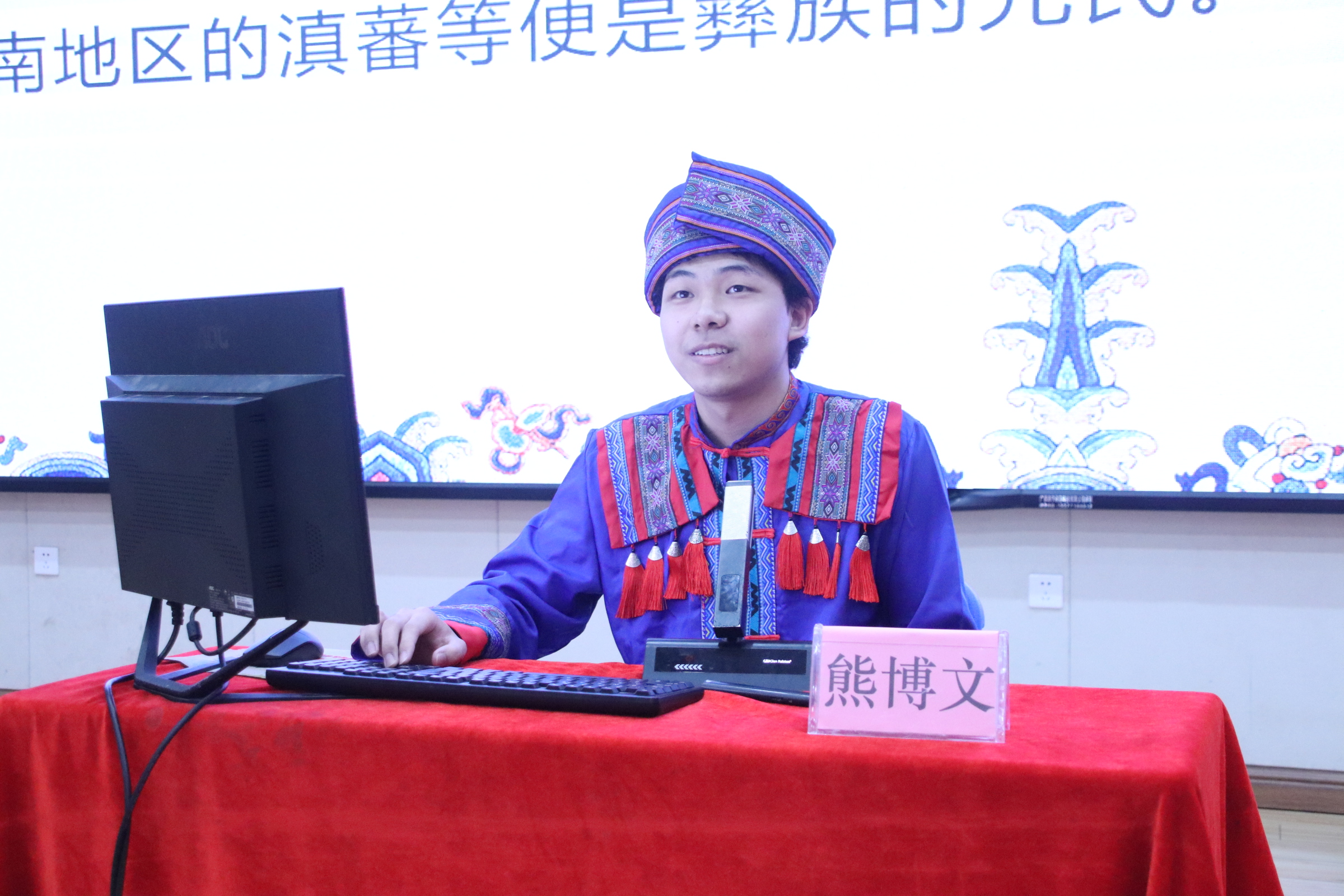 圖為教育學院熊博文同志作題為《彝族民俗文化》的黨課學習