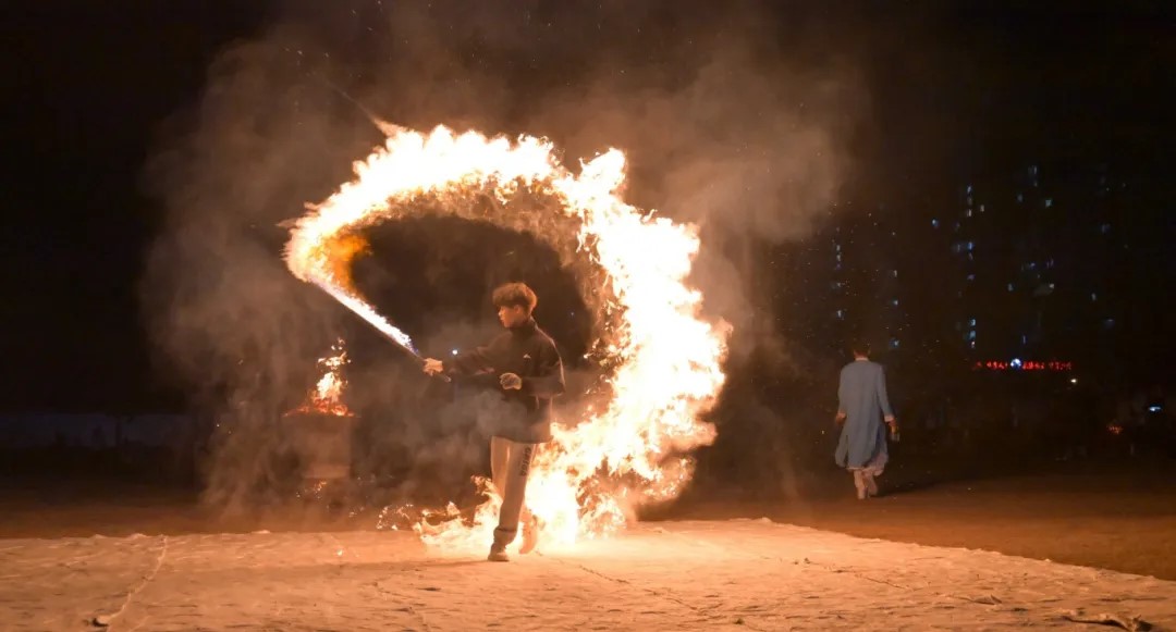 火壺在他們手中宛如一件神秘的魔法道具,每一次噴火都像是在繪制獨特的火之畫卷。