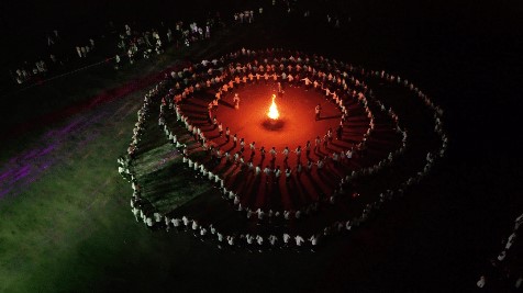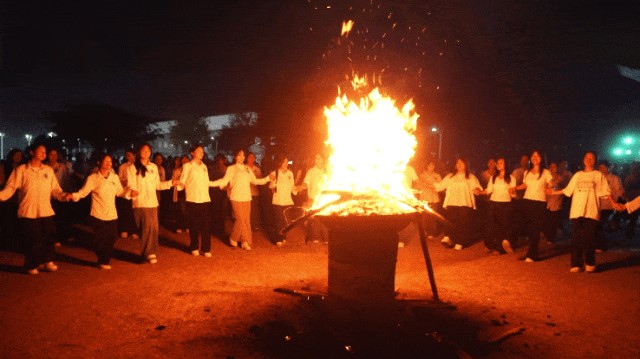 教育學院和藝術設計學院的同學們手拉手圍繞篝火盡情歡跳,熊熊燃燒的篝火象征著熱情與活力,大家在火光中釋放自我,共同沉浸在這歡樂的海洋,將晚會的氣氛推向了最高潮。