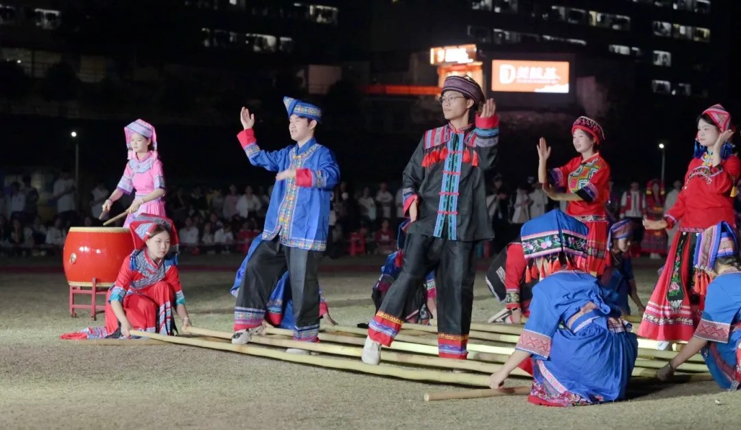伴隨著輕快的節(jié)奏,表演者在竹竿的開合間靈活跳動,既展現了高超的技巧,又體現了民族文化中團結協作的精神,現場氣氛熱烈非凡。