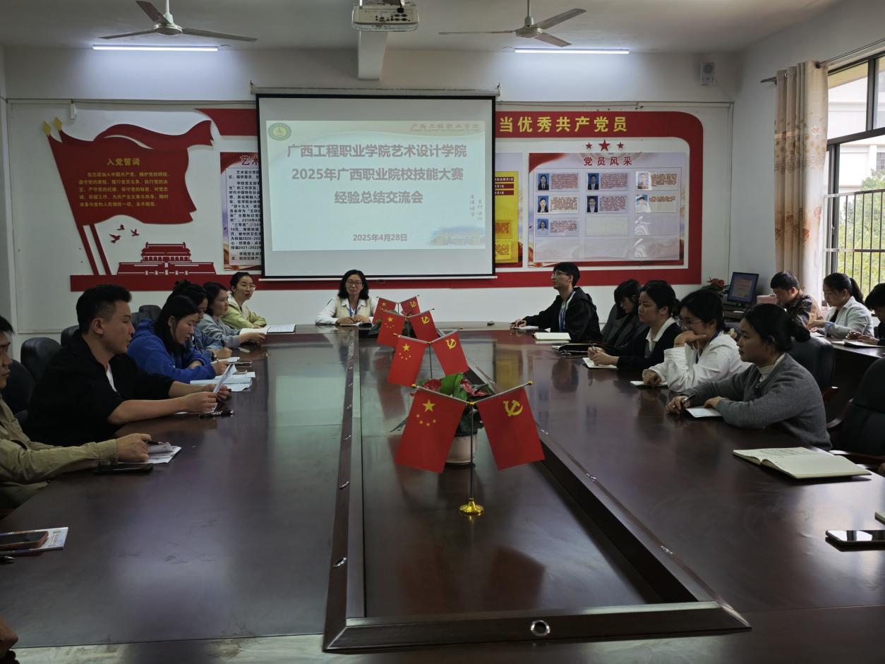 為進一步總結2025年廣西職業(yè)院校技能大賽參賽經驗、剖析不足,推動“以賽促教、以教促賽”的深度融合,全面提升學院教育教學水平,2025年4月8日下午,藝術設計學院在學院三樓黨員活動室召開了參加2025年廣西職業(yè)院校技能大賽經驗總結交流會,學院全體教師參加了此次會議,會議由學院黨支部書記、院長覃鳳姣主持。