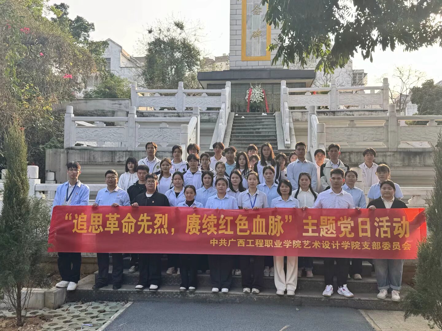 為緬懷革命先烈、弘揚(yáng)革命精神,深化愛(ài)國(guó)主義教育,2025年4月2日下午,藝術(shù)設(shè)計(jì)學(xué)院黨支部組織全體黨員赴平果市烈士陵園開(kāi)展“追思革命先烈,賡續(xù)紅色血脈”主題黨日活動(dòng)。活動(dòng)通過(guò)追思先烈事跡,強(qiáng)化師生理想信念,厚植愛(ài)黨愛(ài)國(guó)情懷,激勵(lì)師生以實(shí)際行動(dòng)賡續(xù)紅色血脈。