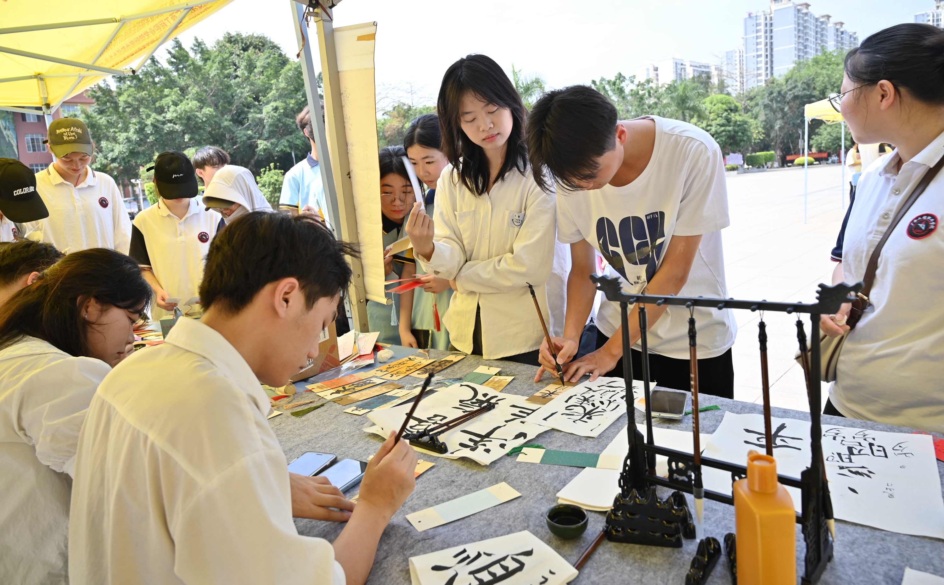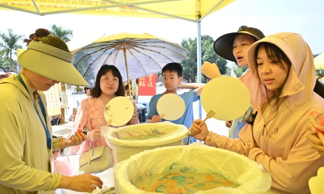 “非遺漆扇”體驗區(qū),一把把精致的漆扇在師生們的手中逐漸成形,展現(xiàn)了非遺技藝的獨特韻味。