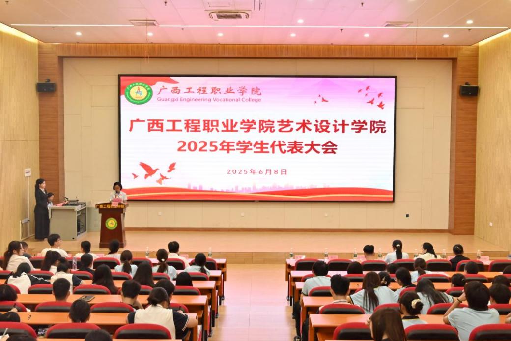2025年6月8日下午,廣西工程職業(yè)學(xué)院藝術(shù)設(shè)計(jì)學(xué)院第四次學(xué)生代表大會(huì)在圖文信息大樓學(xué)術(shù)三樓報(bào)告廳順利召開。出席大會(huì)的有藝術(shù)設(shè)計(jì)學(xué)院黨支部書記兼院長(zhǎng)覃鳳姣、黨支部副書記趙志輝、辦公室主任陳國(guó)昇、分團(tuán)委書記李東英以及全體輔導(dǎo)員。各班級(jí)學(xué)生代表共同見證了這一青春盛會(huì)。