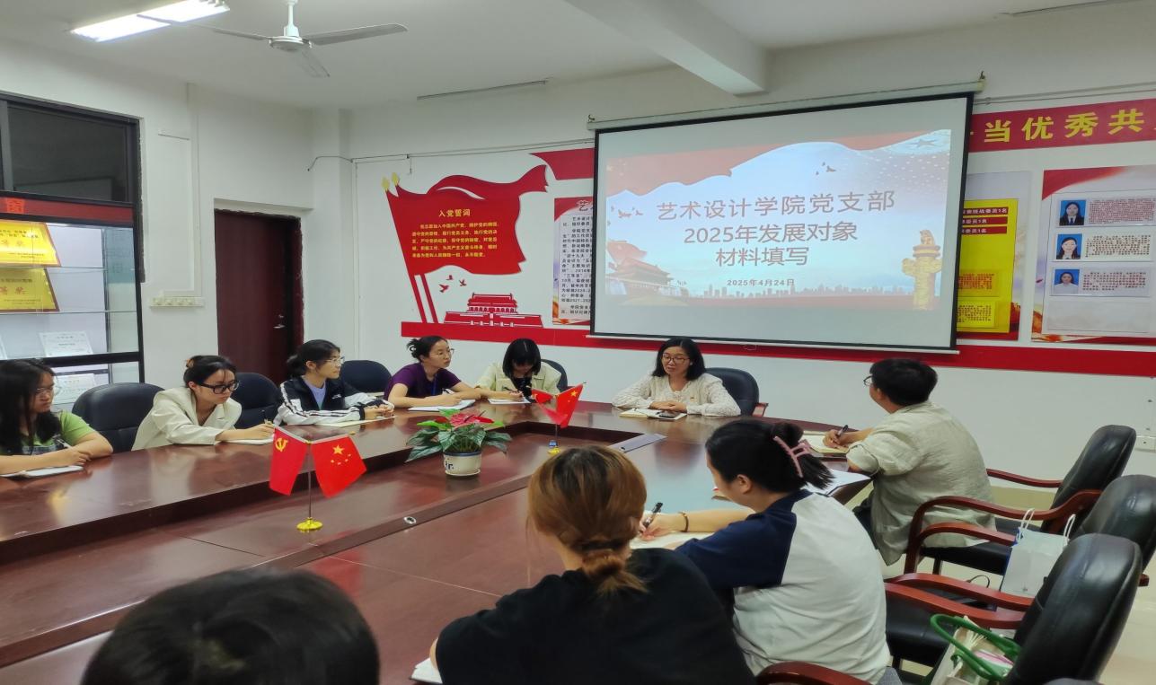 2025年4月24日晚,藝術(shù)設(shè)計(jì)學(xué)院黨支部在學(xué)院三樓黨員活動(dòng)室召開(kāi)了2025年發(fā)展對(duì)象座談會(huì)。學(xué)院黨支部書(shū)記覃鳳姣、副書(shū)記趙志輝、紀(jì)律委員蘇媚出席本次座談會(huì),并與發(fā)展對(duì)象深入交流。此次座談會(huì)旨在嚴(yán)把黨員發(fā)展“入口關(guān)”,切實(shí)提升發(fā)展對(duì)象的思想政治素質(zhì)。