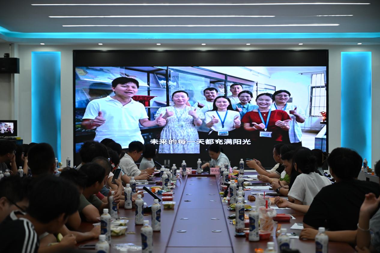 圖為畢業(yè)生代表們觀看學(xué)院為全體2025屆畢業(yè)生錄制的祝福視頻