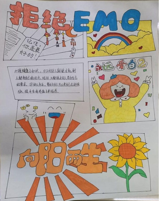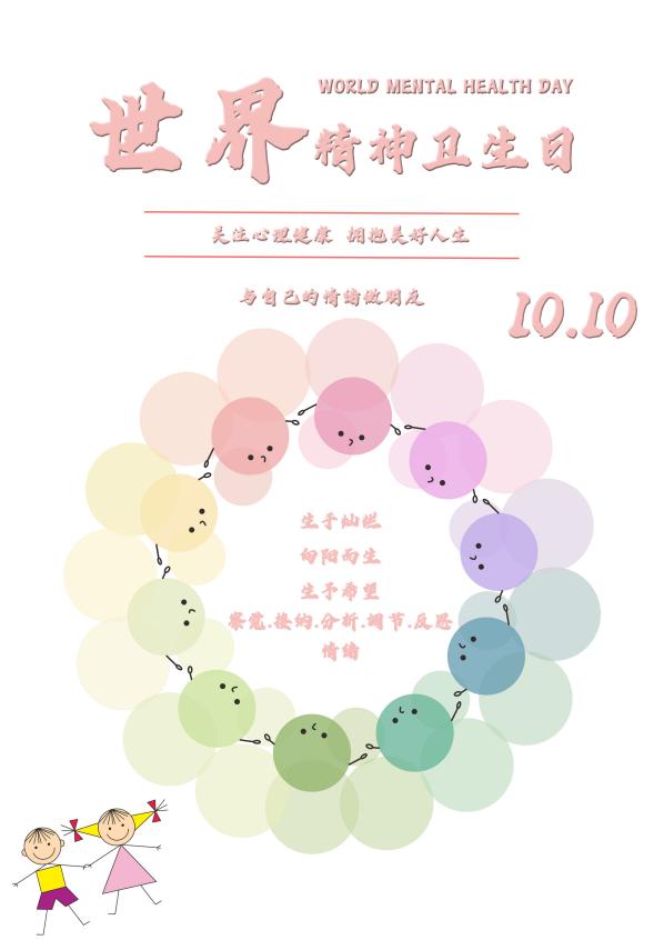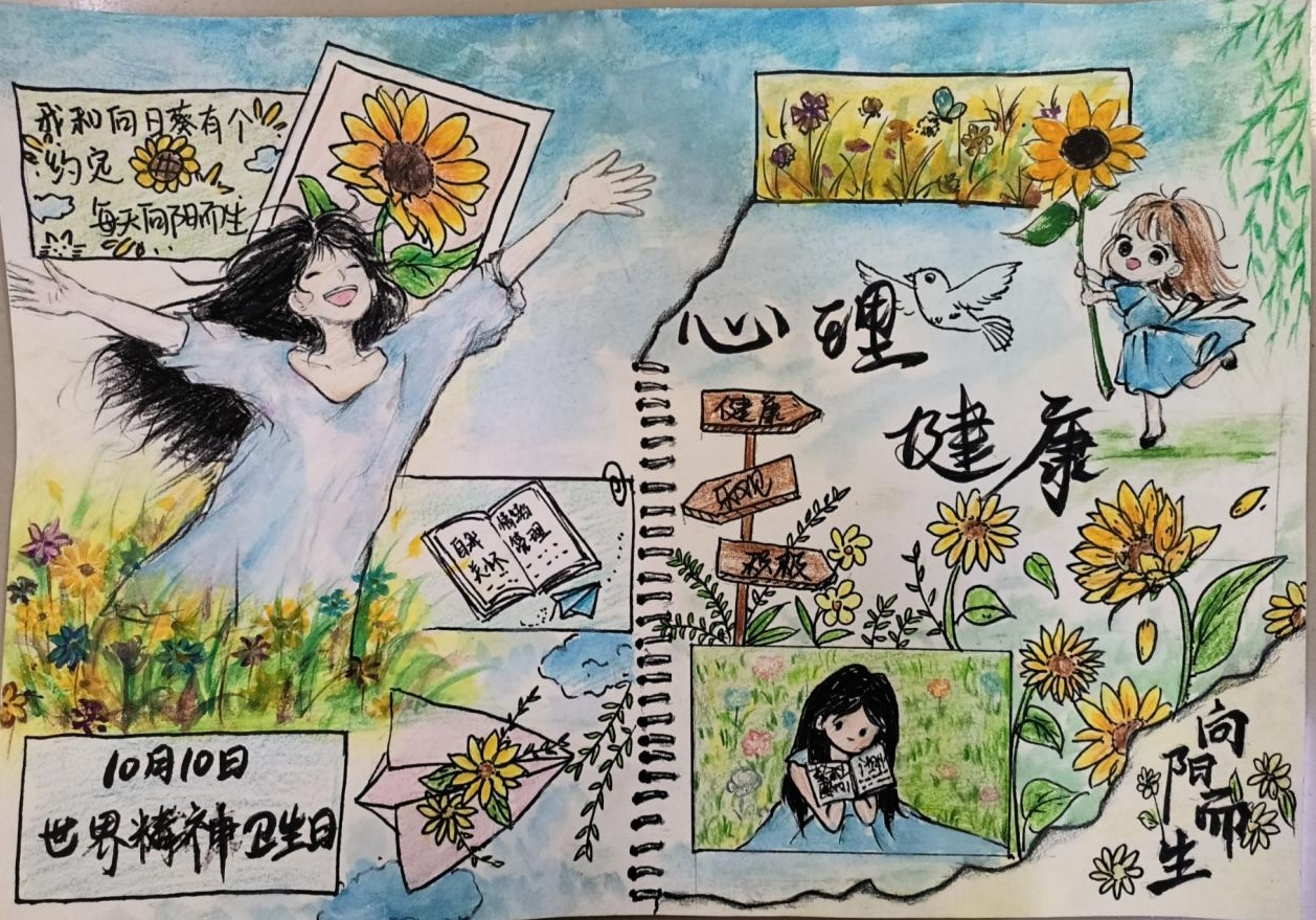 9月30日至10月10日,學(xué)生們發(fā)揮自己的專業(yè)能力,以世界精神衛(wèi)生日為主題,繪制了相關(guān)主題的海報(bào),在繪制海報(bào)的過程中,同學(xué)們?cè)鲞M(jìn)了對(duì)世界精神衛(wèi)生日的認(rèn)知和了解,同時(shí)也理解了宣傳心理健康知識(shí)的重要性。