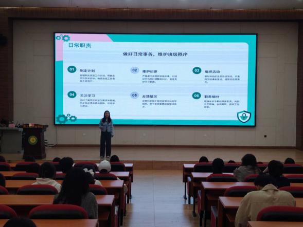 規(guī)范日常行為:學院黨支部副書記趙志輝老師主講的《學生干部日常工作規(guī)范》,明確了學生干部的職責邊界與行為準則,強調了規(guī)范化和制度化在工作中的重要性。