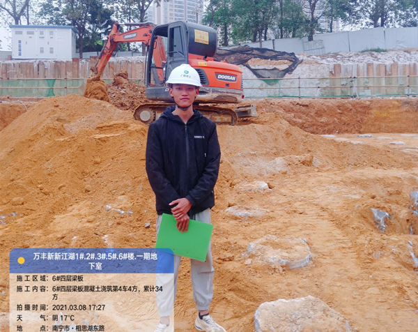 李坤銓?zhuān)ㄖO(shè)計(jì)專(zhuān)業(yè),2018級(jí),現(xiàn)在廣西建工第一建筑工程集團(tuán)有限公司實(shí)習(xí),崗位:施工員。