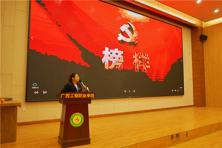 2021年4月12日晚上,廣西工程職業(yè)學(xué)院藝術(shù)設(shè)計(jì)學(xué)院黨支部在學(xué)校圖文信息大樓一樓學(xué)術(shù)報(bào)告廳召開(kāi) “學(xué)身邊榜樣,做時(shí)代楷模”專(zhuān)題黨課學(xué)習(xí)會(huì),藝術(shù)設(shè)計(jì)學(xué)院黨支部全體黨員、發(fā)展對(duì)象、入黨積極分子等參加了黨課學(xué)習(xí),本次黨課學(xué)習(xí)會(huì)由黨支部組織委員陸閑同志主持,支部書(shū)記、副院長(zhǎng)覃鳳姣同志出席學(xué)習(xí)會(huì)并作了重要講話。