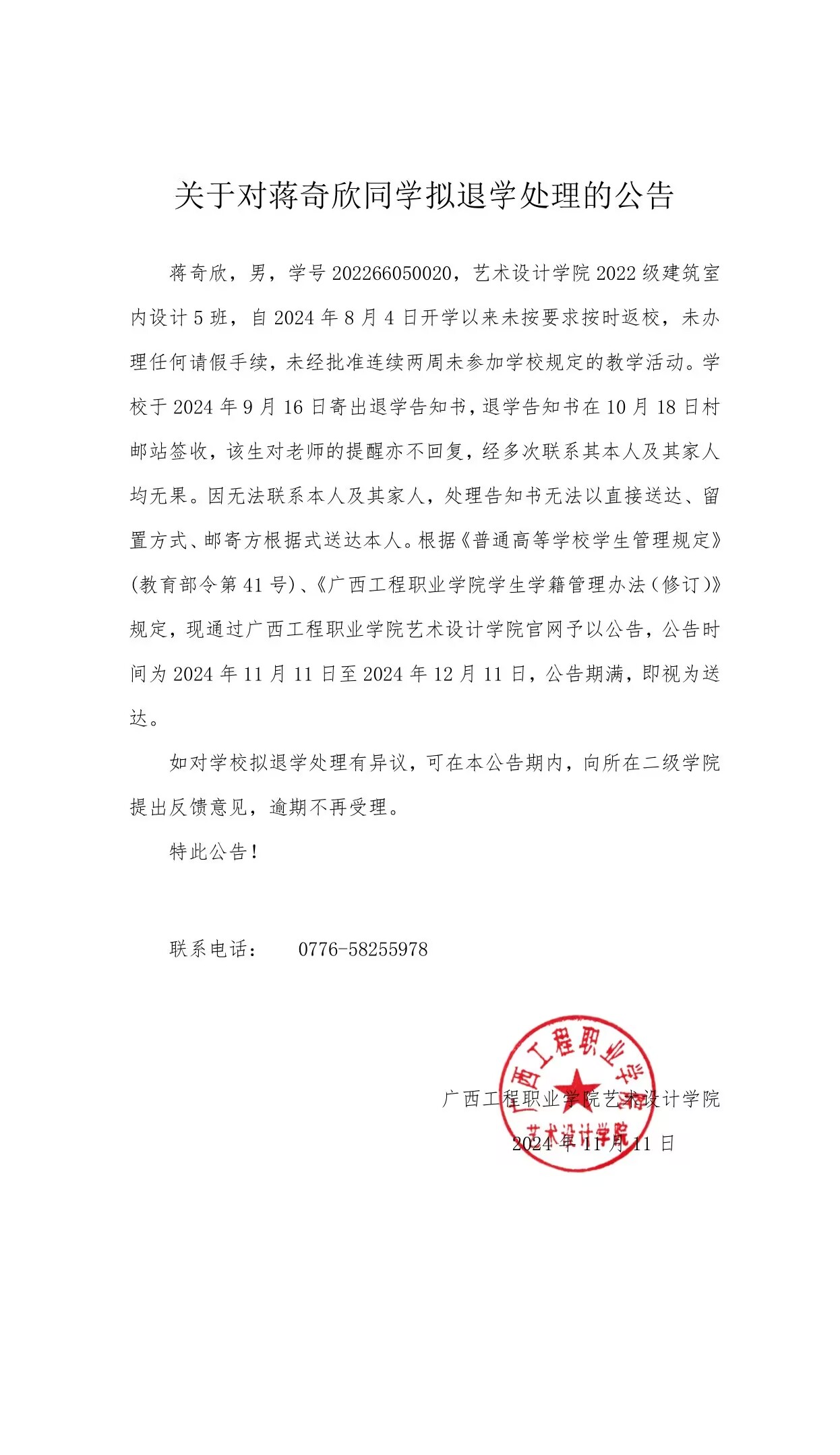 下一篇:關(guān)于對(duì)關(guān)旭智同學(xué)擬退學(xué)處理的公告