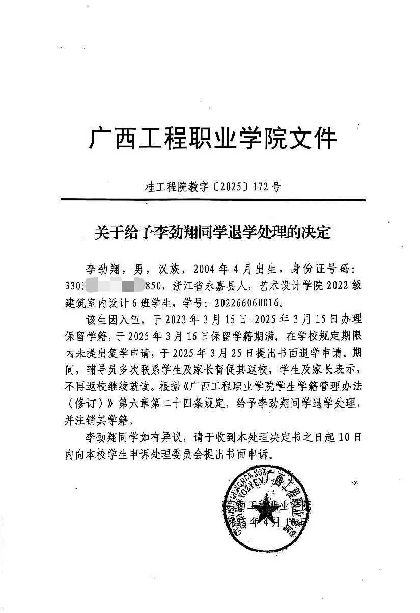 上一篇:關于給予謝華春同學退學處理的決定