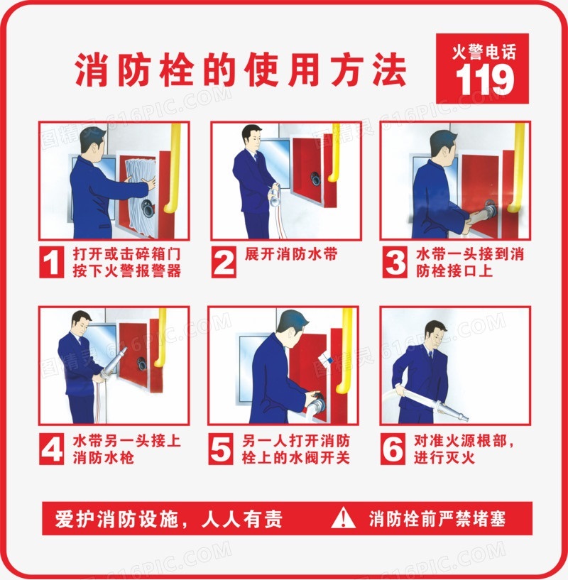(1)打開(kāi)消火栓門(mén),按下內(nèi)部火警按鈕(按鈕是報(bào)警和啟動(dòng)消防泵的)?! ?br />(2)一人接好槍頭和水帶奔向起火點(diǎn)。