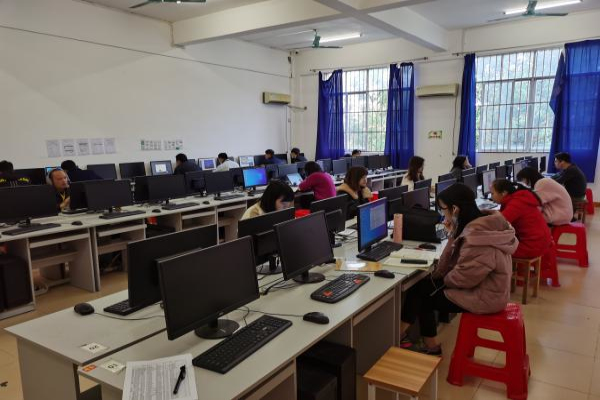 老師們?cè)跈C(jī)房線上授課