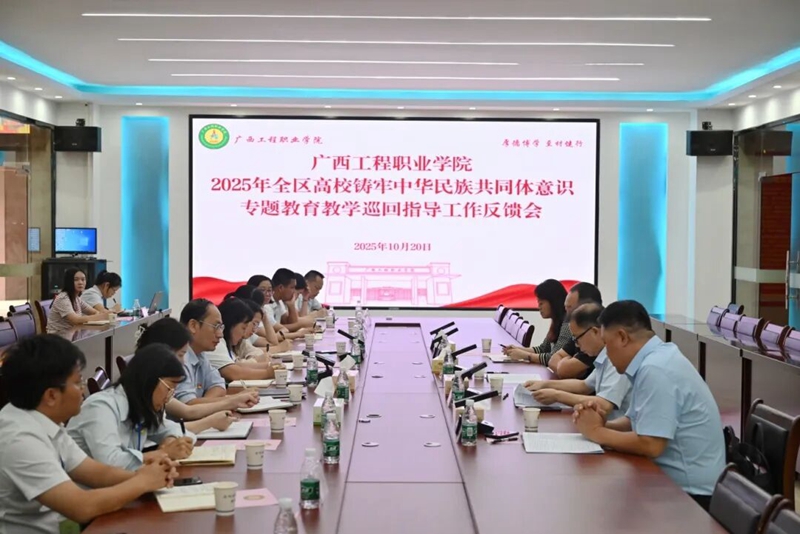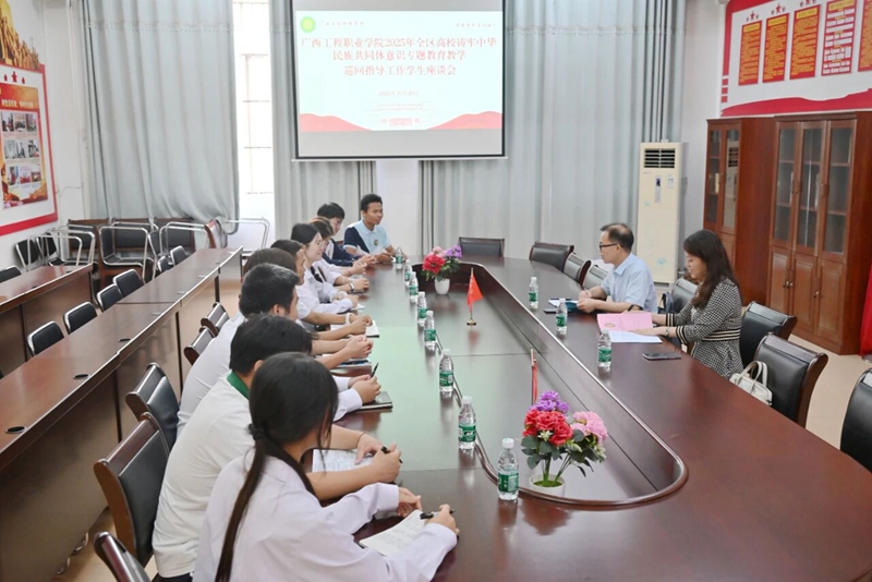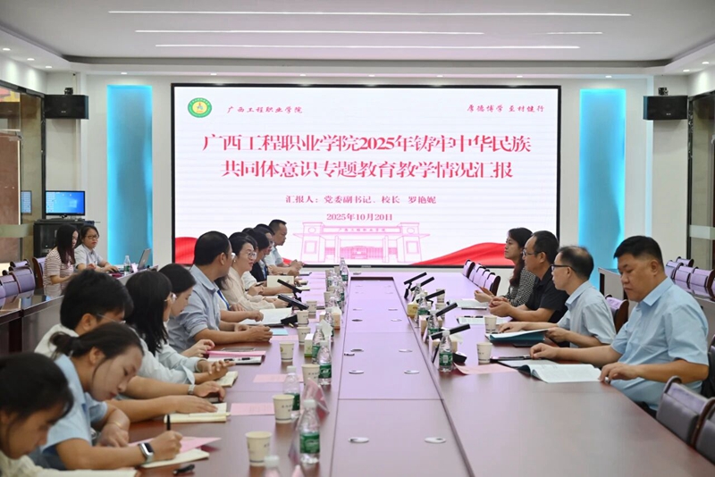 為深入貫徹落實習近平總書記關(guān)于加強和改進民族工作的重要思想,扎實推進“中華民族共同體概論”課程建設(shè)及相關(guān)教育工作,全面推進鑄牢中華民族共同體意識教育進教材、進課堂、進頭腦,推動鑄牢中華民族共同體意識融入思政課一體化建設(shè),2025年10月20日,全區(qū)高校鑄牢中華民族共同體意識專題教育教學巡回指導專家組王柏中組長一行到我校開展專項指導檢查工作。學校黨委副書記、校長羅艷妮,黨委副書記黃秋霞、副校長黃德偉出席匯報會。相關(guān)職能部門負責人參加匯報會。黨委副書記黃秋霞主持匯報會。