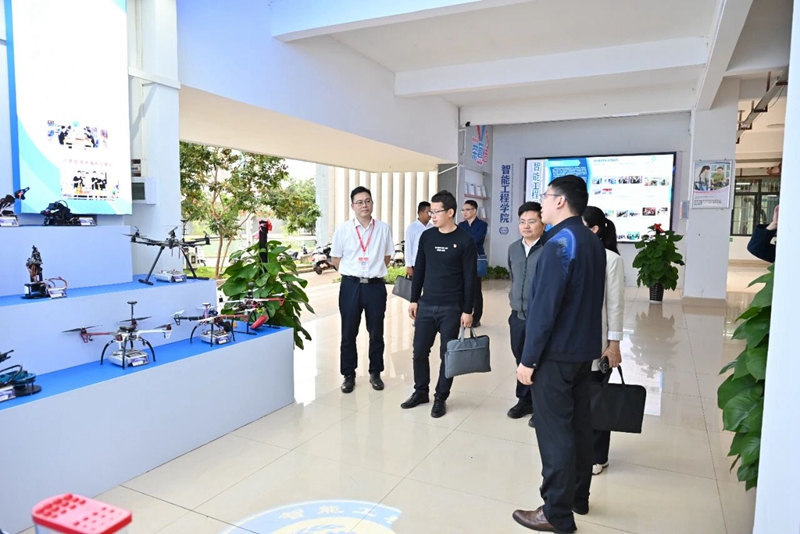 在孫登林副校長及相關(guān)職能部門負責(zé)人的陪同下,我校一行先后參觀了廣西城市職業(yè)大學(xué)學(xué)研產(chǎn)職校區(qū)的制造融合創(chuàng)新中心、汽車智能技術(shù)研究中心、知識產(chǎn)權(quán)與創(chuàng)新中心、中外語言文化實訓(xùn)中心及教育學(xué)院學(xué)研產(chǎn)職綜合實訓(xùn)基地等多個實訓(xùn)場所。參觀過程中,各實訓(xùn)中心負責(zé)人詳細介紹了實訓(xùn)室的建設(shè)規(guī)劃、設(shè)備配置、教學(xué)運行管理及產(chǎn)教融合實訓(xùn)項目的開展情況。我校教學(xué)團隊認真聆聽講解,仔細觀摩實訓(xùn)設(shè)備操作流程,并不時與現(xiàn)場教師、實訓(xùn)管理人員深入交流,重點探討了實訓(xùn)室在課程對接、技能培養(yǎng)、校企合作、AI賦能教學(xué)等方面的創(chuàng)新舉措,現(xiàn)場還觀看了無人機在農(nóng)業(yè)、文旅領(lǐng)域的應(yīng)用演示。