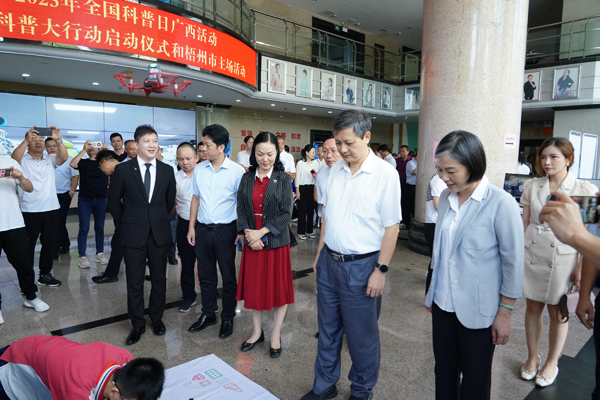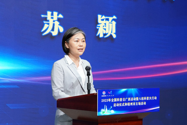 蘇穎在啟動儀式上致辭,向出席本次活動的來賓表示熱烈歡迎。她表示,梧州市委、市政府高度重視科技創(chuàng)新和科學(xué)普及,以科技賦能助力經(jīng)濟(jì)社會和特色產(chǎn)業(yè)高質(zhì)量發(fā)展,近年來,創(chuàng)新建成大聯(lián)合、大協(xié)作、大科普工作機(jī)制,多渠道、多方式向群眾普及科學(xué)知識、倡導(dǎo)科學(xué)方法、傳播科學(xué)思想、弘揚(yáng)科學(xué)精神。當(dāng)前,梧州市經(jīng)濟(jì)總體持續(xù)向好,正朝著打造“一極三城”、建設(shè)“四個(gè)梧州”的宏偉目標(biāo)奮斗。梧州將以此次活動為契機(jī),進(jìn)一步號召全市各級各部門和廣大群眾積極行動起來,主動參與科普活動,不斷推動科普事業(yè)高質(zhì)量發(fā)展和全民科學(xué)素質(zhì)水平大幅提升。
