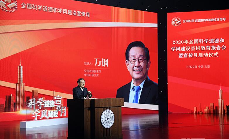 在深入學習貫徹黨的十九屆五中全會精神之際,為大力弘揚科學家精神,引導廣大師生和科技工作者傳承優(yōu)良學風、堅守學術(shù)誠信,中國科協(xié)、教育部、科技部、中科院、社科院、工程院、自然科學基金委于11月20日在北京舉辦2020年全國科學道德和學風建設宣講教育報告會暨宣傳月啟動儀式。全國政協(xié)副主席、中國科協(xié)主席萬鋼致辭,中國工程院院士戚發(fā)軔先生、敦煌研究院名譽院長樊錦詩先生作報告,中國科協(xié)黨組書記、常務副主席、書記處第一書記懷進鵬主持報告會。