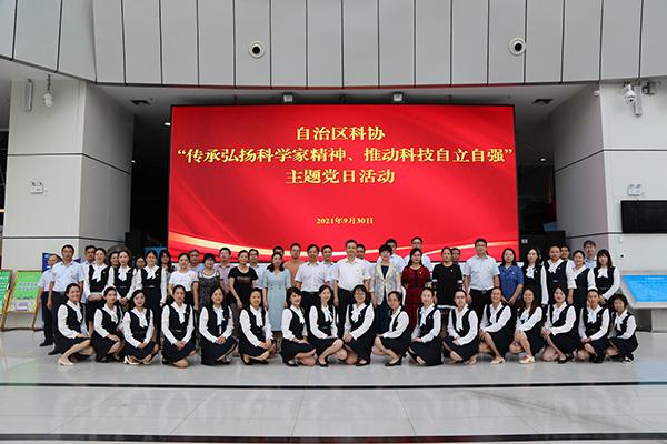 9月30日,在“十一”國慶節(jié)即將到來之際,結(jié)合“赤子丹心——與黨同齡的科學(xué)家”展覽啟動(dòng)開幕,廣西科協(xié)組織開展“傳承弘揚(yáng)科學(xué)家精神、推動(dòng)科技自立自強(qiáng)”主題黨日活動(dòng)。廣西科協(xié)黨組書記、副主席納翔,黨組成員、副主席梁春花、何求以及廣西科協(xié)機(jī)關(guān)和直屬事業(yè)單位的黨員干部參加了主題黨日活動(dòng)。