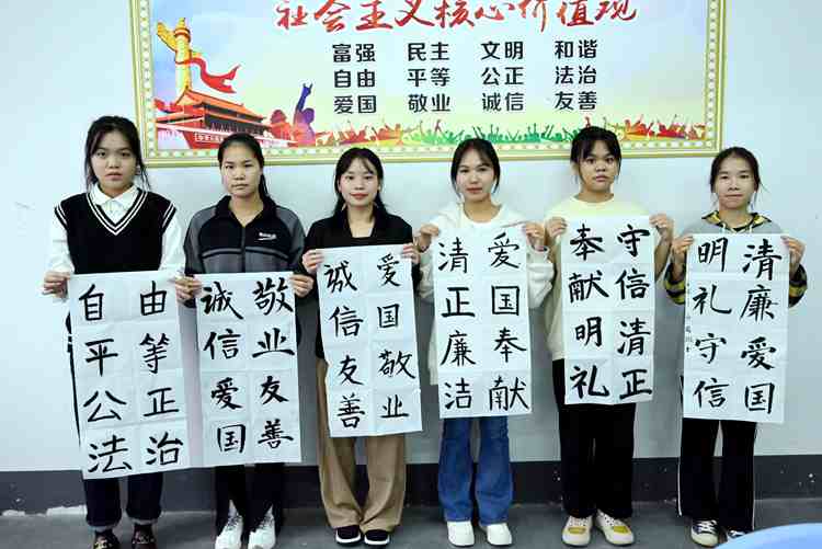 為進(jìn)一步推進(jìn)“清廉學(xué)校”建設(shè),營造風(fēng)清氣正的教育生態(tài)和發(fā)展環(huán)境,提高廣大教職工為人師表、廉潔從教、愛崗敬業(yè)的意識,增強(qiáng)廣大學(xué)生干凈做人、規(guī)范做事、遵紀(jì)守法的自覺性,幫助青年學(xué)生扣好人生第一顆扣子,2022年11月中旬,廣西工程職業(yè)學(xué)院開展以“妙筆寫清廉 翰墨揚(yáng)正氣”為主題的廉潔文化進(jìn)書法課堂教育活動(dòng)。