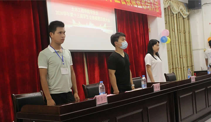 2020年6月30日下午19:30。土木工程學(xué)院學(xué)生會第十三屆換屆大會在辦公大樓4樓會議室舉行。出席本次換屆大會的領(lǐng)導(dǎo)和嘉賓有:林萌副校長、彭家官副院長、陳春任老師、謝安妮老師、土木工程學(xué)院全體輔導(dǎo)員和校十大社團及各二級學(xué)院代表,本次大會由趙裕有主持。大會共有五個議程。