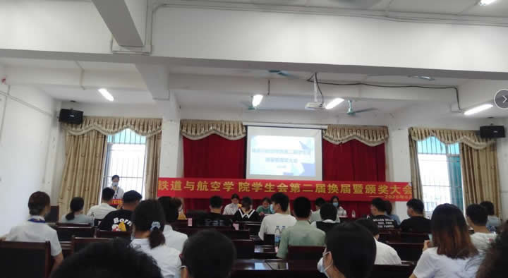 在這個夏日炎炎的七月初,懷著感恩與不舍,2020年7月3日晚,鐵道與航空學院學生會在辦公樓四樓大會議室舉行我院學生會第二屆換屆暨頒獎大會,出席大會的有學校黨委委員、副校長彭高彬老師、鐵道與航空學院副院長覃清香老師、鐵道與航空學院分團委書記陸閑老師,土木工程學院分團委書記陳春任老師、國防科技學院辦公室主任黃妮老師、教育學院分團委書記謝安妮老師以及鐵道學院各年級輔導員老師和各個二級學院學生會代表、社團代表。