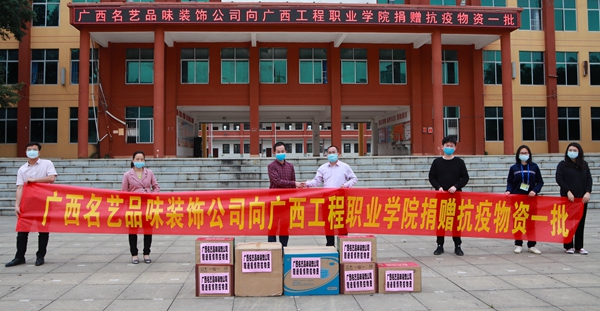 工程與藝術(shù)設(shè)計學(xué)院2007級電腦藝術(shù)設(shè)計專業(yè)校友、廣西名藝品味裝飾公司總經(jīng)理張遠水向母校捐贈防控物資