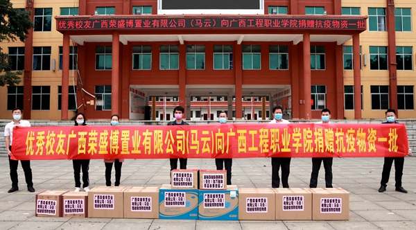 2020年4月13日,我校經(jīng)濟管理學(xué)院2009級市場營銷專業(yè)校友、廣西榮盛博置業(yè)有限公司董事長馬云,2008級國際經(jīng)濟與貿(mào)易專業(yè)校友、廣西百色藝品梧桐文化有限公司總經(jīng)理黃雅潔及工程與藝術(shù)設(shè)計學(xué)院2007級電腦藝術(shù)設(shè)計專業(yè)校友、廣西名藝品味裝飾公司總經(jīng)理張遠水等多位校友分別向?qū)W校捐贈疫情防控物資,助力學(xué)校新冠肺炎防控疫情工作和開學(xué)準備工作。